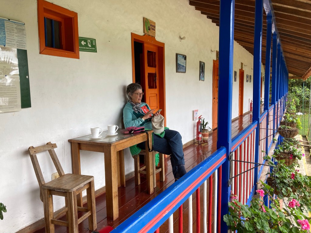 Kaum liegen wir, geht es mit der kolumbianischen Karaoke los: je später der Abend, desto lauter die Gesänge. Die Oropax werden tiefer in die Ohren gestopft und irgendwann nach Mitternacht ist der Spuk vorbei. Zum Glück bleibt der Verkehrslärm hier aus, der uns in Salamina fast noch mehr den Schlaf geraubt hat. Die Nacht ist für mich um 6:30 Uhr vorbei. Aus der Kirche vis a vie erschallt aus dem Lautsprecher ein Ave Maria, das im gesamten Dorf zu hören ist. Völlig schräg! Anstatt weiter zu schlafen, plane ich am iPad unseren Aufenthalt im südlichen Teil Kolumbiens – muss ja auch mal sein.
