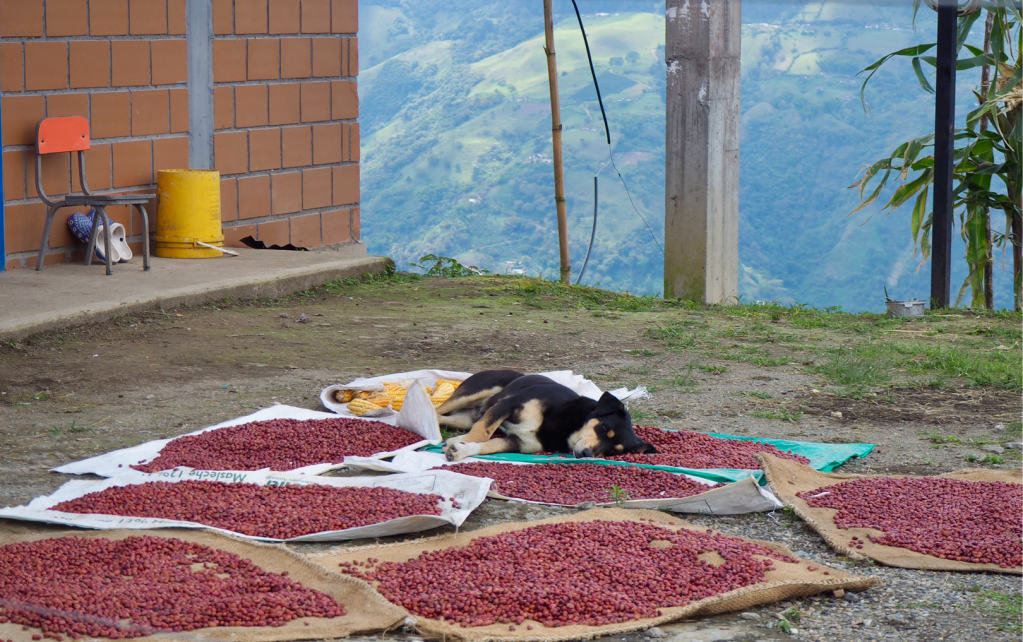 Nach insgesamt fünf Stunden Busfahrt, mit einer langen Pause am Busterminal in Manizales, kommen wir in Marsella an. Die Landschaften waren großartig, die Straße gesäumt von Bananen, Kaffeepflanzen, Regenwald und steilen Hängen sowie einzelnen Hütten, Ställen, Fincas und kleinen Ortschaften. Je südlicher und tiefer wir kommen, desto breiter sind die Seitentäler und die Kaffeeanbauflächen mehren sich.