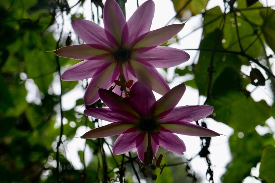 Wir brechen wieder bei herrlichem Sonnenschein auf, sagen den Hühnern und Schweinen adios und wandern weiter bergab. Die anfänglich noch kühlen Bergtemperaturen werden schnell wärmer, je tiefer wir kommen. Wir durchqueren jetzt die verschiedenen Vegetationszonen der Anden, immer mehr neue Bäume kommen hinzu. Es tauchen immer mehr Blüten auf. Palmen erscheinen wieder im Wald. Von den steilen Hängen rechts von uns kommen immer mehr Flüsse, die wir auf schmalen Brücken überqueren. Der Weg bleibt schlammig, die Gummistiefel behalten ihren Wert.