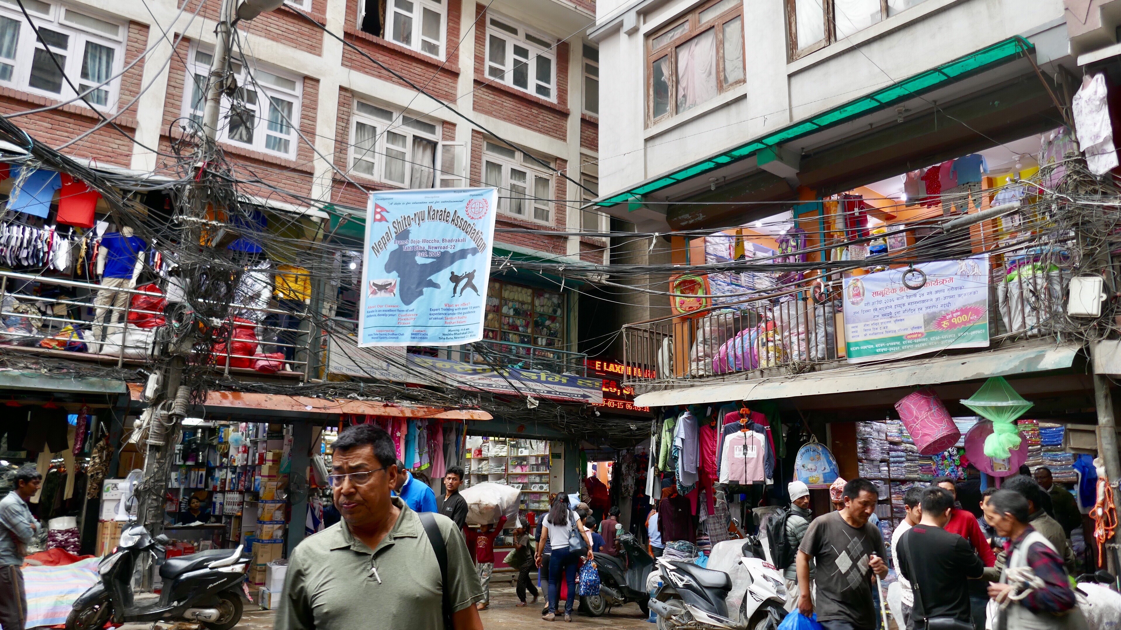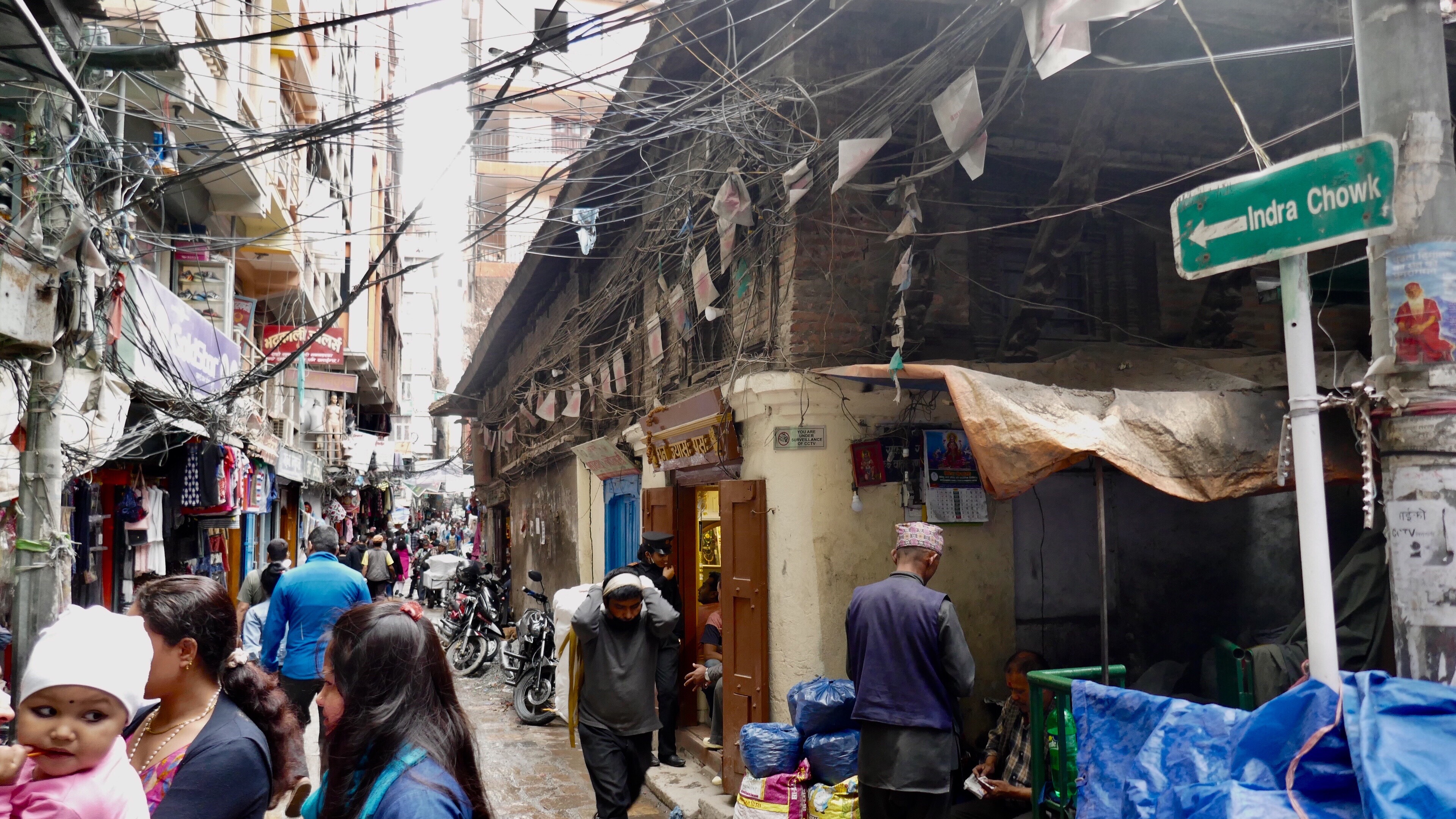 Thamel ist einerseits Touristenzone mit Souvenirgeschäften und Restaurants, aber auch die Altstadt und Einkaufsviertel für die Kathmanduer Menschen. In kleinen Geschäften kann man alles kaufen. Dazwischen gezwängt kleine Tempel und Pagoden. Einige hinduistische Tempel werden als Marktfläche benutzt, andere sind Orte echter Hingabe. Im ganzen Gewühl sitzen Menschen in der Hocke und zünden Kerzen an und halten kurz inne im ganzen Chaos.