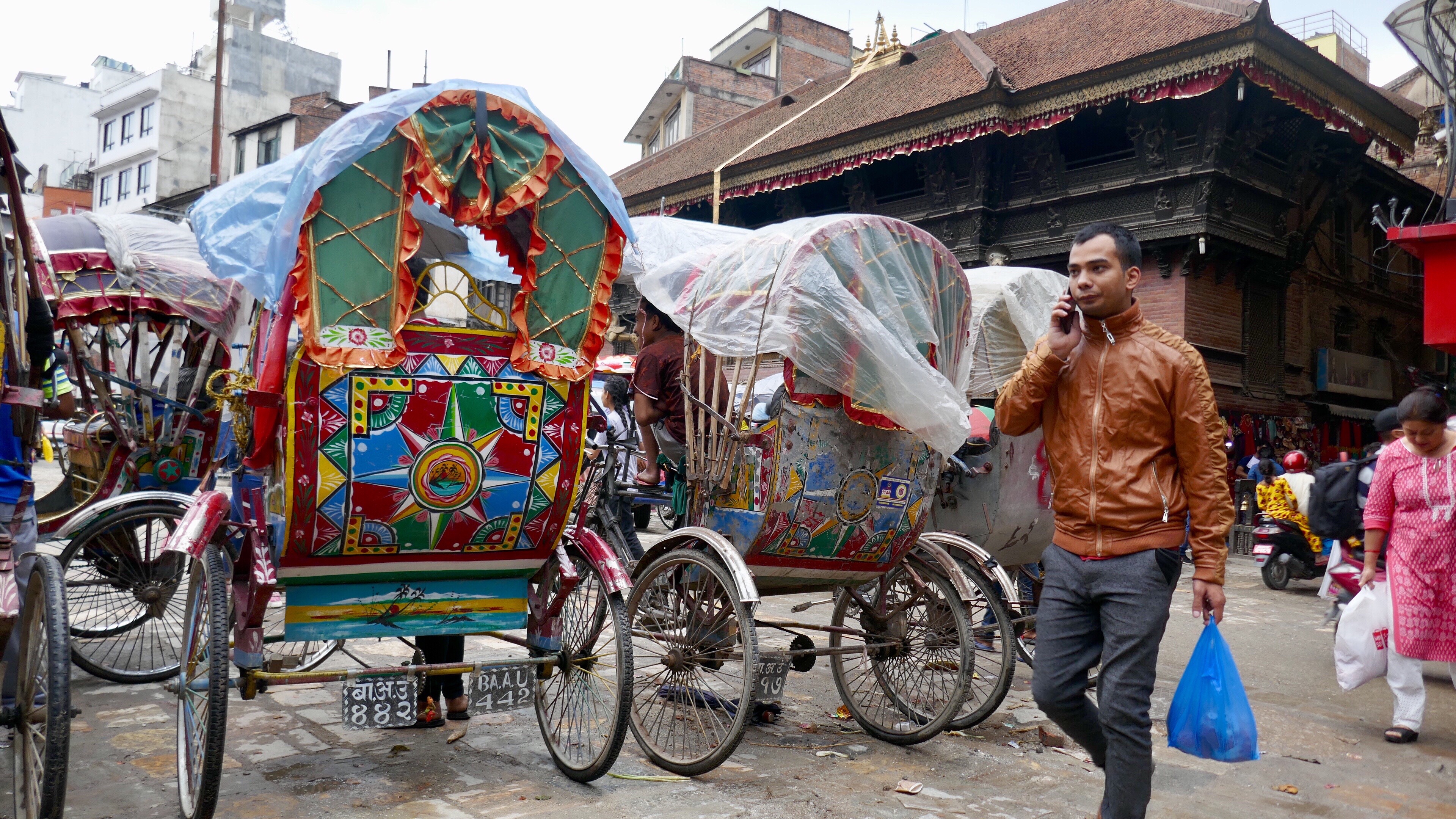 Kathmandu ist schon eine verrückte Stadt. Das Chaos scheint das Grundprinzip zu sein. Es wirkt so, als mache jeder was er wolle, Regeln scheint es nicht zu geben. Jeder baut sein Haus, wie er will, jeder fährt wie er will, jeder kämpft sich durch, wie er will. Dazwischen die Ritschka-Fahrer, die habe ich noch vergessen. In ihrer grandiosen Langsamkeit ziehen sie ohne Gangschaltung durch die Straßen. Wenn sei anfahren, muss der Fahrer aus dem Sattel gehen und die ganze Kraft seines Gewichtes einsetzen, um das Gefährt in Bewegung zu setzen.