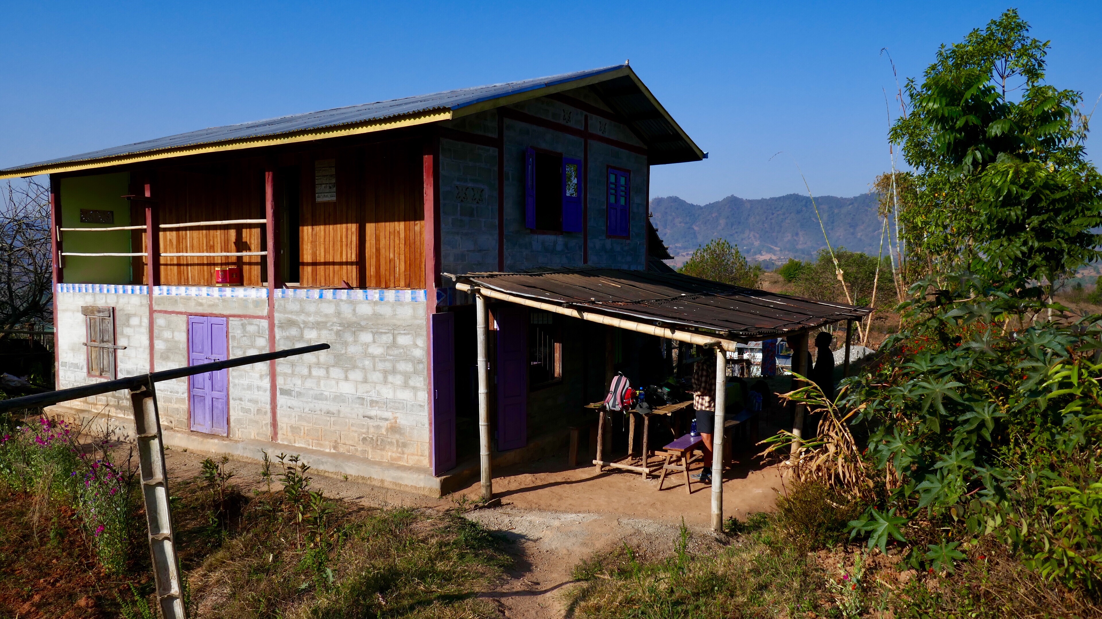 Mittags erreichen wir ein Dorf, wo eine Familie für uns kocht. Avocadosalat, gebratener Reis, Gemüse, Hühnchenfleisch. Danach Mittagsschlaf, einfach nach hinten auf den Teakholzboden fallen lassen und eine Stunde schlafen. Unser Marschtempo ist durchaus flott, auch als erfahrene Wanderer müssen wir uns ranhalten. Aber bei jedem Fotostopp fallen wir wieder zurück.