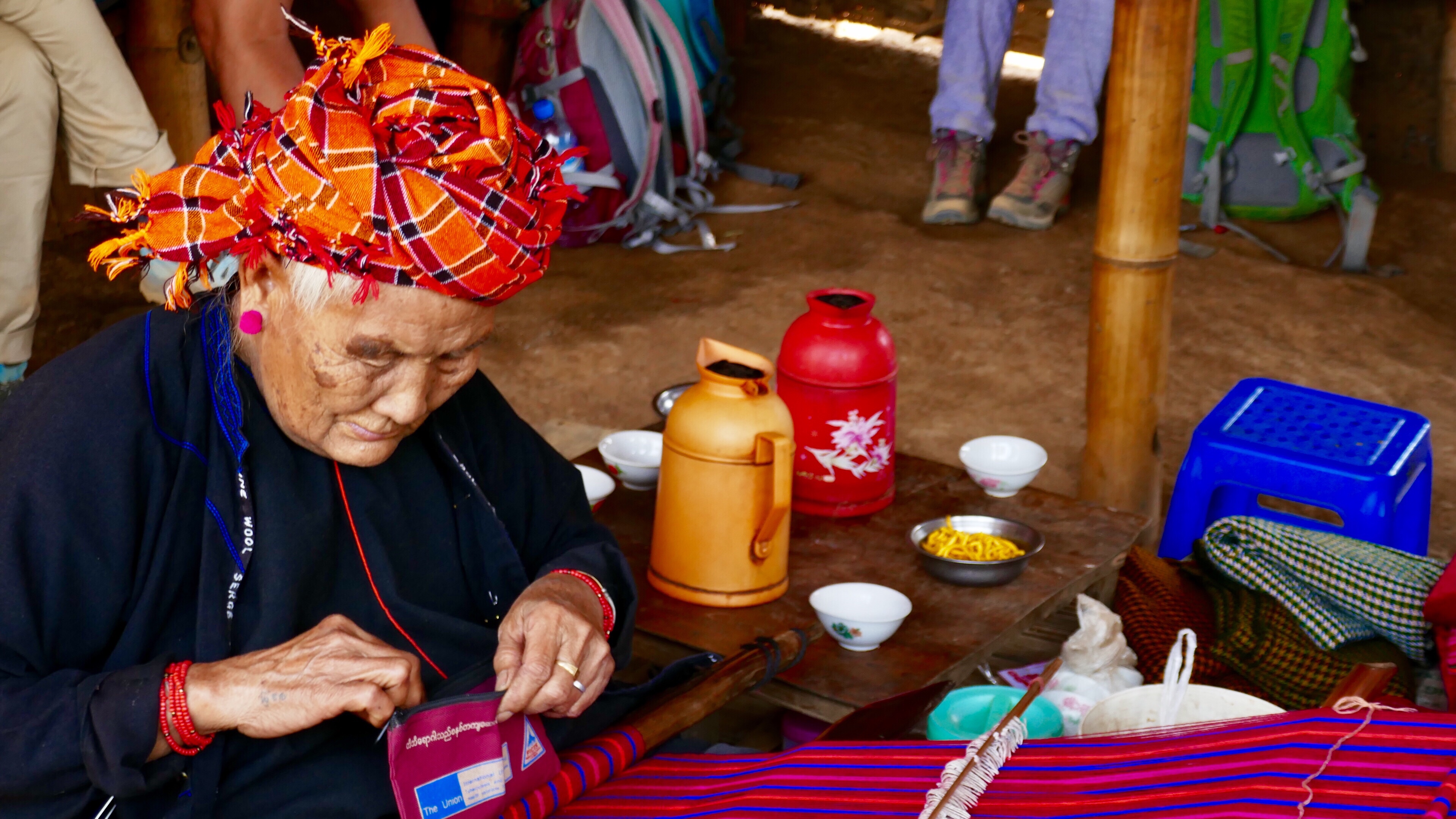 Die Dörfer, durch die wir kommen, haben meist keinen Strom. Die ersten Dörfer waren Palaung-Dörfer, dann kamen wir durch Dörfer des Pao-Volkes (2). Unser Guide konnte sich hier gut verständigen, er stammt selbst aus dieser Volksgruppe. Viele der Dorfbewohner können kein Birmanisch verstehen und sprechen. Heiraten zwischen den Volksgruppen sind selten und bedürfen besonderer Genehmigung der Eltern und Dorfvorstände. Frauen tragen besondere Trachten, schwarze Gewänder mit bunten Säumen. Auf dem Kopf tragen sie bunte um den Kopf geschlagene Tücher. Die Männer sind eher einfallslos gekleidet. Myanmar ist ein Vielvölkerstaat mit 135 Ethnien.