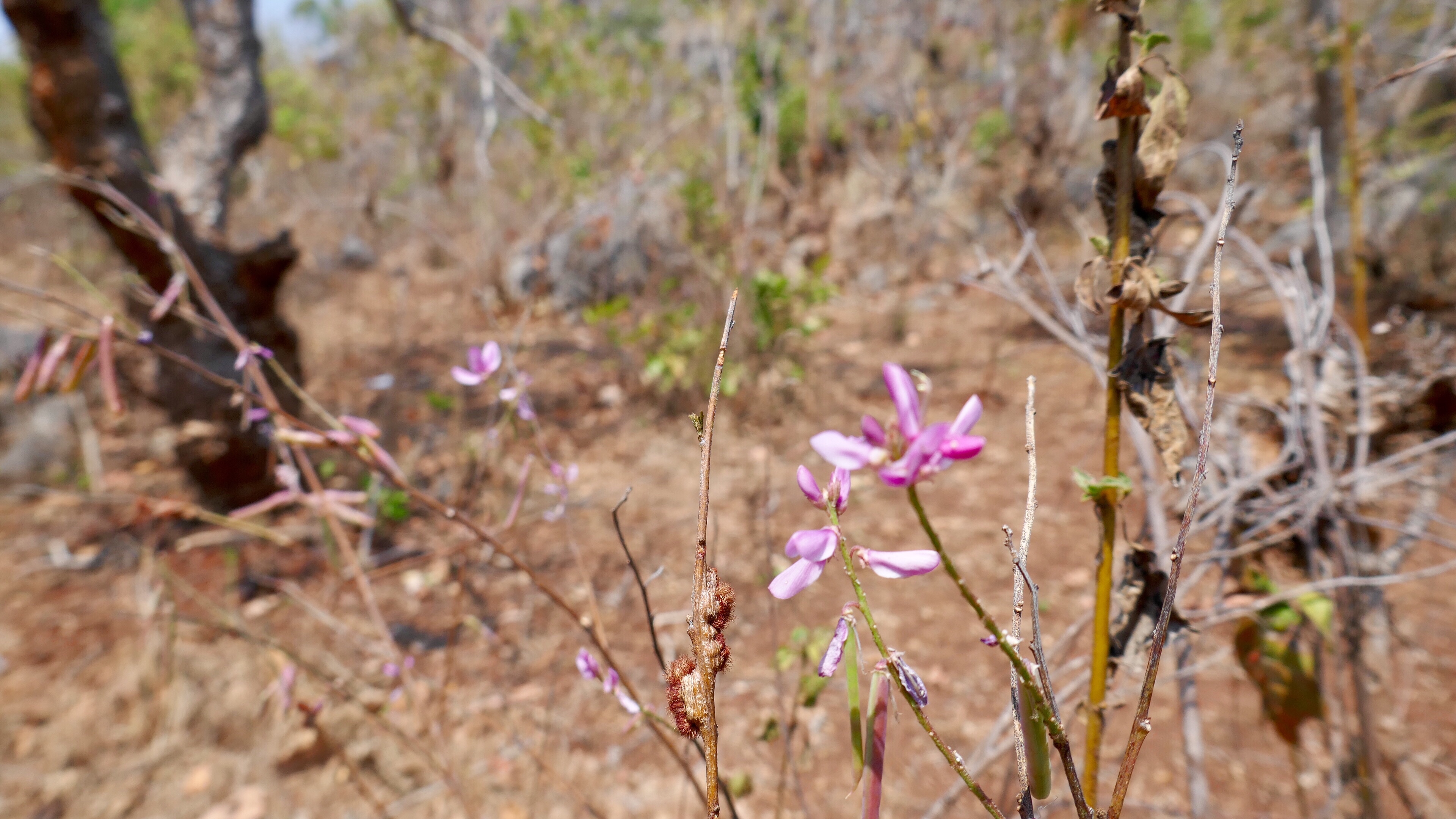 Am nächsten Morgen wird die Landschaft schnell anders. Wir lassen den Wald hinter uns und Felder in hügeliger Landschaft tun sch vor uns auf. Braun und Ocker werden die bestimmenden Farben des Tages. An einem Geschäft stoßen weitere fünf Wanderer zu uns, die nur zwei Tage unterwegs sein wollen. Kleine Felder reihen sich aneinander, auf vielen wird mit der Hacke gearbeitet. Feldarbeit ist Handarbeit. Die Werkzeuge bescheiden: Hacke, langes Buschmesser, das wars meistens. Manchmal bearbeitet eine ganze Gruppe ein Feld, aber das ist selten. Die meisten Felder sind abgeerntet. Es wird schnell sehr heiß. die schützenden Bäume des Waldes fehlen. Nur einzelne große weit ausladende Bäume säumen unseren Weg. Das einzige, was noch auf den Feldern steht, ist Chili. Unser Weg ist ist ein ständiges auf und ab, klare Täler oder oder Flussläufe sind nicht zu erkennen.