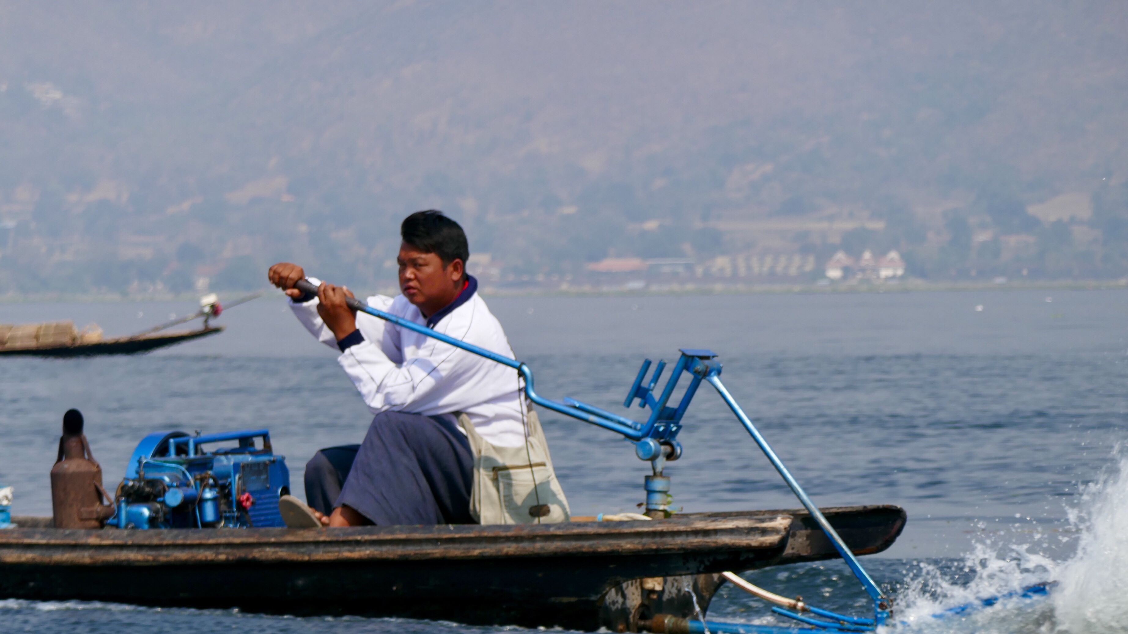 Am Ende unserer Wanderung setzt Than die Gruppe in zwei Langboote, die auf uns warten. Erst fahren wir mit gemächlichem Tempo durch schmale Kanäle, links und rechts die Wasserkulturen mit den Bambushütten der Bauern. Alles geht hier per Boot. Der schmale Kanal mündet in den großen, ein großes Myanmar-Beer Werbeplakat zieht an uns vorbei. Jetzt reiht sich Langboot an Langboot, mit hoher Geschwindigkeit auf Naung Shwe zufahrend.