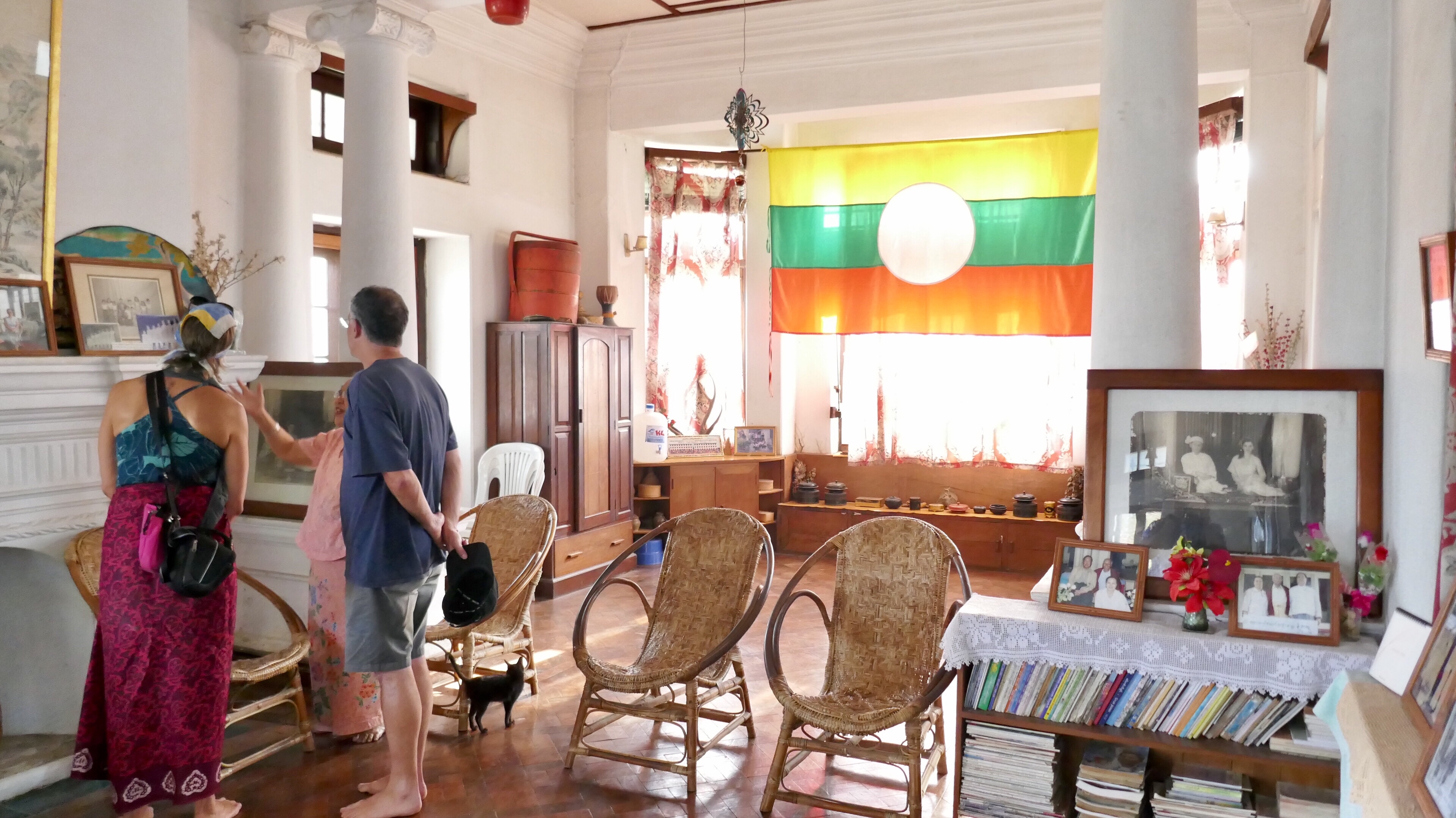 Ich stehe in einem Salon der Villa. Die Frau von Mr. Donald erzählt, dass hier die Krönungszeremonie der Sao Tsusandi, der Frau des Prinzen Sao Kya Seng, stattfand. Ich kenne die Bilder, die sie uns zeigt, die das Prinzenpaar vornehm abgebildet zeigt. Ich habe in den letzten Wochen „Dämmerung über Birma“ von Inge Sargent gelesen. In diesem Buch sind alle Bilder abgedruckt. Die Prinzessin war Inge Eberhard aus Österreich.