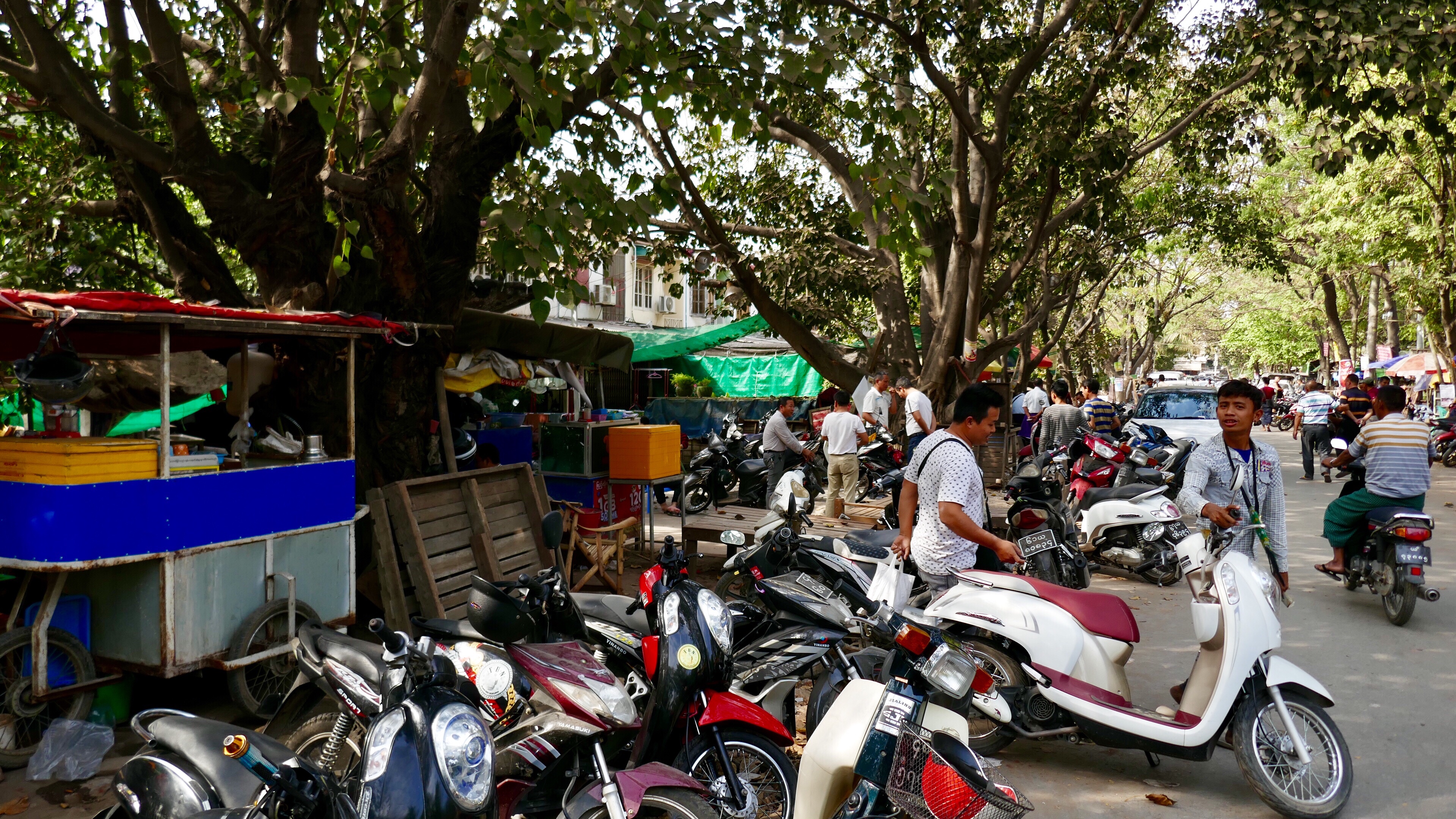 Wird die Stadt kollabieren, wenn immer mehr Mopeds und Autos hinzukommen? Wie schön wäre es, wenn alle lärmenden Mopeds durch E-Mopeds ersetzt würden, die nur noch dahinsurren. Die Straßeninfrastruktur Mandalays ist völlig unzureichend für den Individualverkehr. Ein Bussystem existiert nicht. Wie wird es werden, wenn sich die Menschen noch mehr Mopeds leisten können? Der Staat scheint seine Aufgabe in der Daseinsvorsorge überhaupt nicht wahrzunehmen. Der öffentliche Transport läuft über Pritschenwagen, auf deren Ladefläche Bastmatten ausgelegt sind und über Mototaxis und Tuk Tuks. Ein Lob an den Liberalismus, der Markt muss es regeln. Die Eisenbahn in myanmar ist verrottet. Sie fährt noch auf den Gleisen die einst die englischen Kolonialherren bauten. So ist die Geschwindigkeit der Züge auch nicht schneller als 30km/h. Man kann aber für 1000 Kyat (60 cent) acht Stunden Zug fahren.