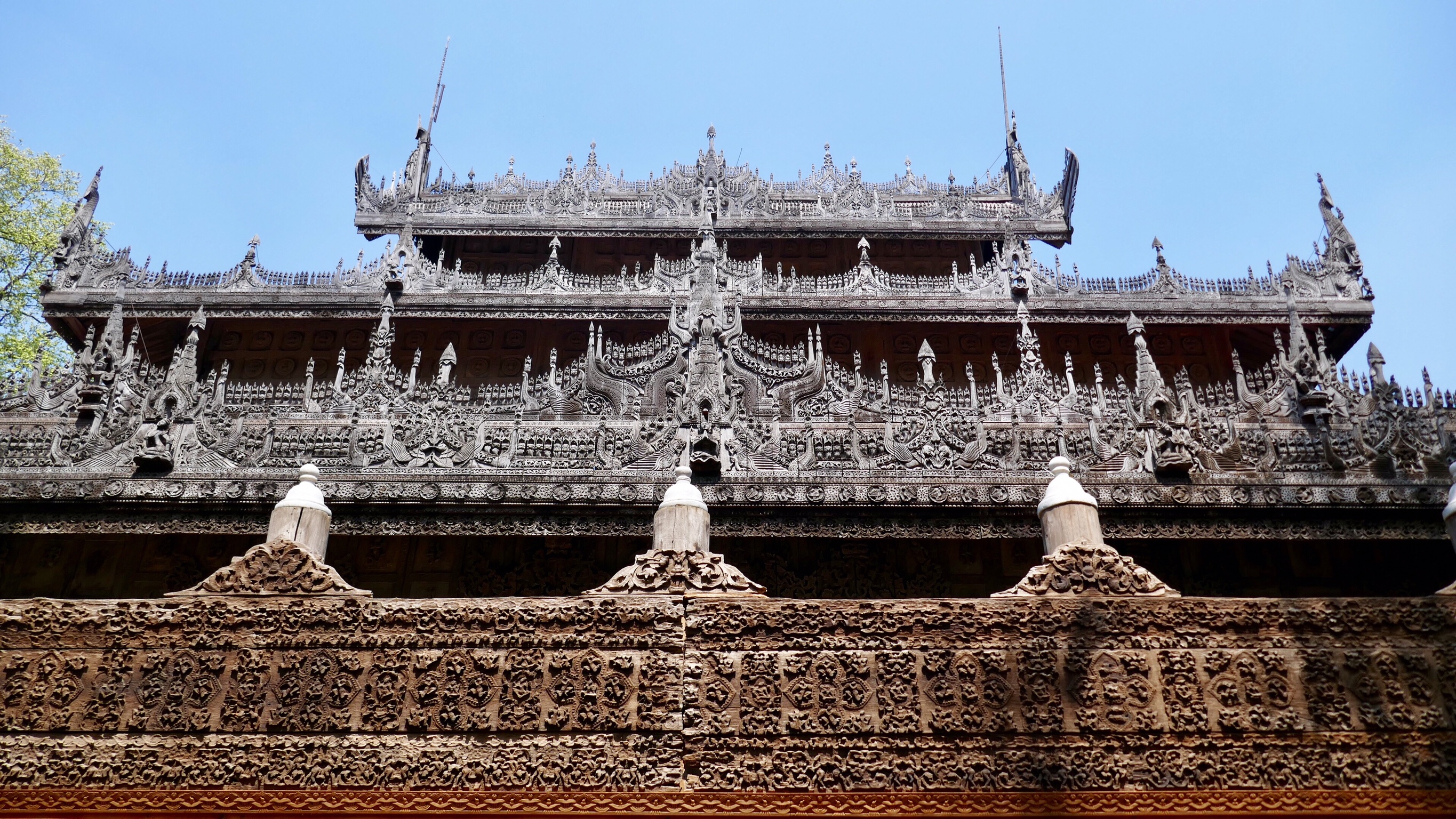 Den Tag davor besuchen wir die Holzpagode des Shwenandaw-Kloster. Tolle Holzschnitzereien verzieren diese Pagode. Sie musste mehrfach mit den unterschiedlichen Herrschern an die jeweiligen neuen Hauptstädte umziehen.